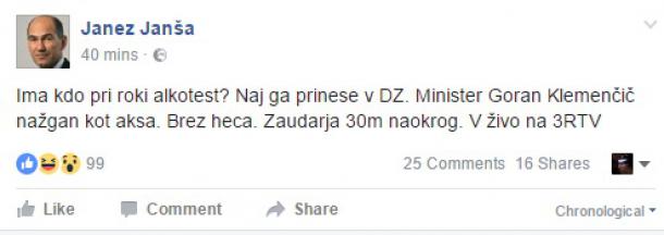 Zadnja »afera« če lahko temu tako rečemo, se je zgodila v petek, ko je pravosodni minister Goran Klemenčič na seji Državnega zbora uprizoril dokaj nenavadno predstavo, ki je požela kopico namigovanja, da je bil minister na delovnem mestu v vinjenem stanju.