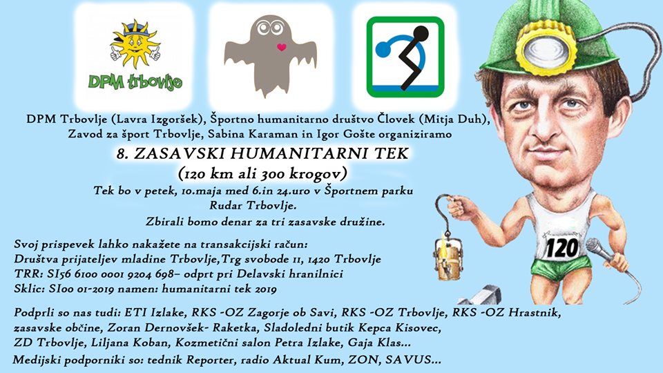Človek svojo veličino pokaže s svojimi nesebičnimi dejanji in uvidom, da je včasih potrebno v ljudeh videti le dobro, ter jim pokazati pot. Eden takšnih je tudi Igor Gošte, ki se bo že osmič podal na tek z dobrodelno noto. V sodelovanju z Zavodom za šport Trbovlje, Športno humanitarnim društvom Človek in Društvom prijateljev mladine Trbovlje bo s Sabino Karaman na trboveljskem stadionu Rudar jutri, 10. maja, pretekel 120 kilometrov, ob tem pa zbiral denar za tri zasavske družine.