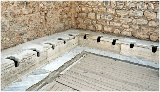 V bogatih domovih, tudi po grškem vzoru, so obstajale kombinacije gobic z volno in listi cvetlic. Takrat so latrine veljale za primeren kraj za srečanja. Rimljanom med opravilom namreč ni bilo nič kaj nerodno in so se med njim sproščeno pogovarjali s prijatelji. Med tremi stenami sobe je bilo običajno 10-20 ljudi. Kanalizacija je šla v odtoke pod sedeži, kar so spirali s tekočo vodo.