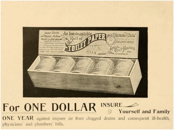 Brata Clarence in Edward Scott sta se prva domislila in leta 1890 izdelala toaletni papir v obliki zvitka. Svoj izum sta dobavljala lekarnam in trgovinam, pa tudi hotelom. Kljub temu se jima ni zdelo vredno, da bi na izdelke odtisnila logotip z imenom svojega podjetja – tema o spopadanju z naravnimi potrebami je bila še vedno tabu in je spadala v kategorijo »nespodobno«.