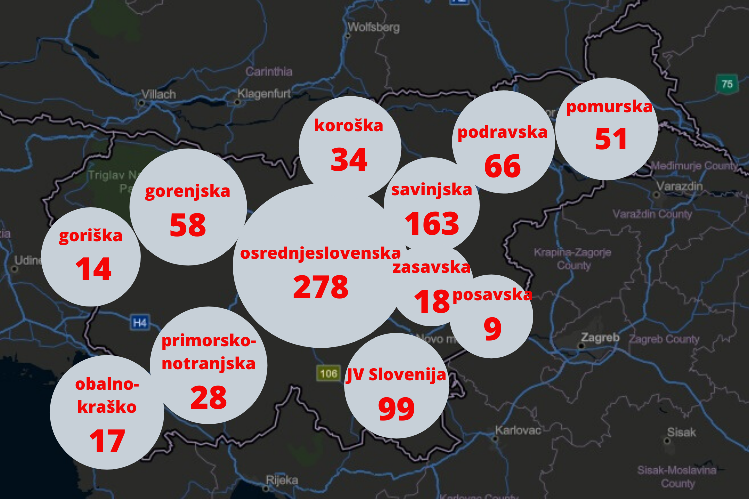 Največ na novo pozitivnih prihaja iz pomurske regije – 23, sledi osrednjeslovenska z 8, savinjska s 5, gorenjska in zasavska s 4, goriška s 3 in JV Slovenija z 1.