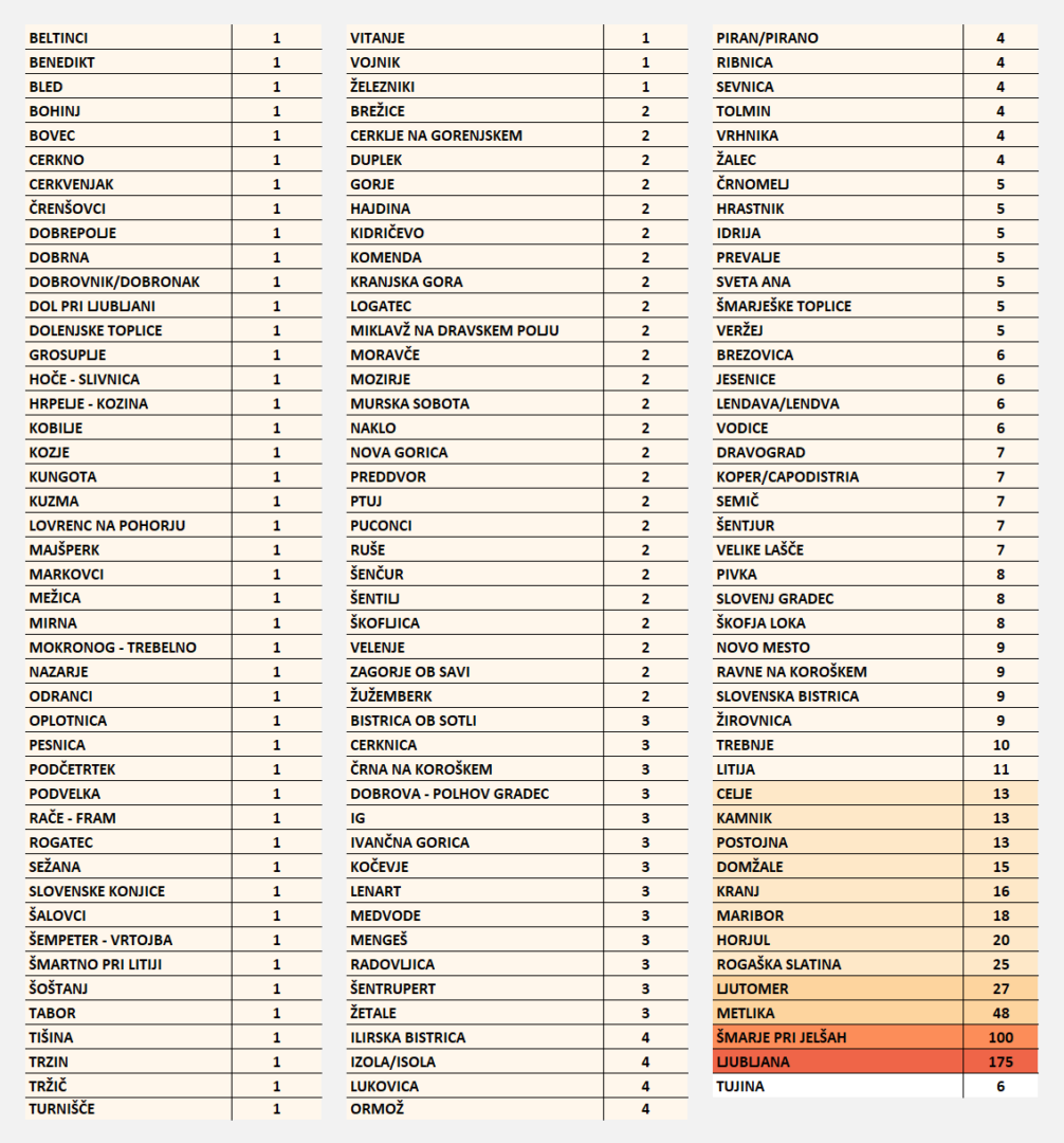 Delež občin, kjer so že potrdili okužbe se še vedno povečuje. Že v 133 (63 odstotkov) občinah imajo po vsaj en primer. V kar 85 občinah beležijo več kot dva okužena.
