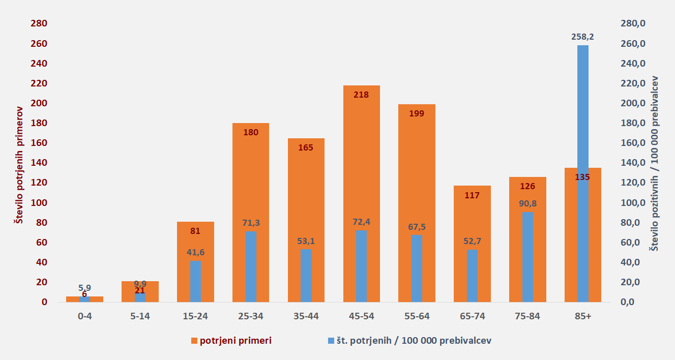 Vsaj en primer okužbe COVID-19 je bil potrjen v 148 občinah (70 odstotkov vseh slovenskih občin), več kot dva primera okužbe COVID-19 sta bila potrjena v 106 občinah.