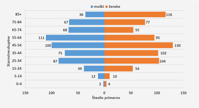 Med okuženimi je 597 moških in 747 žensk. Med zdravstvenimi delavci in zdravstvenimi sodelavci so okužbo s covidom-19 potrdili pri 281 osebah. V domovih starejših občanov (DSO) je okužba s covidom-19 potrjena pri 412 osebah, od tega je 289 oskrbovancev in 123 zdravstvenih delavcev.