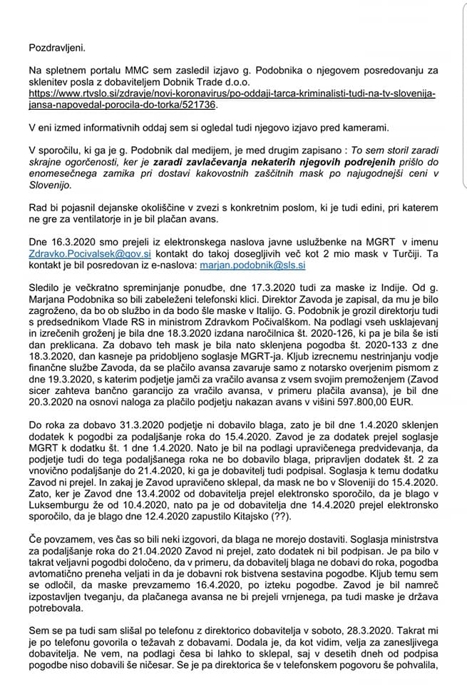 Zgodba o dobavi zaščitnih mask dosega vrelišče. Po tem, ko je v četrtkovi tarči žvižgač Ivan Gale s svojimi izjavami obremenil mnoge politike, med njimi ministra Zdravka Počivalška in Mateja Tonina, nekdanjega direktorja blagovnih rezerv Antona Zakrajška, predsednika SLS Marjana Podobnika, nekdanjega evropskega poslanca Lojzeta Peterleta in mnoge druge, so se zadeve začele razpletati.