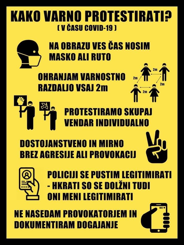 Današnji protestni shod je potekal pod geslom »Ne boste nam vzeli naše svobode!« in zagovarjal tezo, da vlada Janeza Janše pod krinko boja proti virusu uvaja izredne razmere in vsakodnevno krati svoboščine ljudi. Po njihovem mnenju se sporne poteze oblasti vrstijo druga za drugo: povečanje pooblastil policiji, pošiljanje vojske na mejo, širjenje lažnih novic o domnevno neodgovornem vedenju prebivalcev, pretirano in neživljenjsko omejevanje gibanja ljudi, netenje sovraštva do migrantov, izločanje najbolj prekarnih iz ukrepov socialnih pomoči, širjenje nestrpnosti ter osebni napadi na novinarje in novinarsko svobodo. Kot poudarjajo, vse to nima veze z bojem proti epidemiji, temveč kaže na željo aktualne oblasti po vpeljavi avtokratske vladavine, militarizaciji družbe in utrjevanju privilegijev peščice, ki imajo v tej družbi v rokah oblast in bogastvo. Vsemu temu vzklikajo NE!